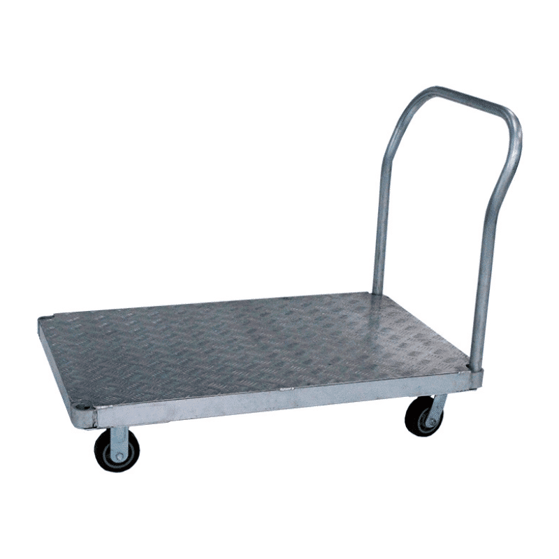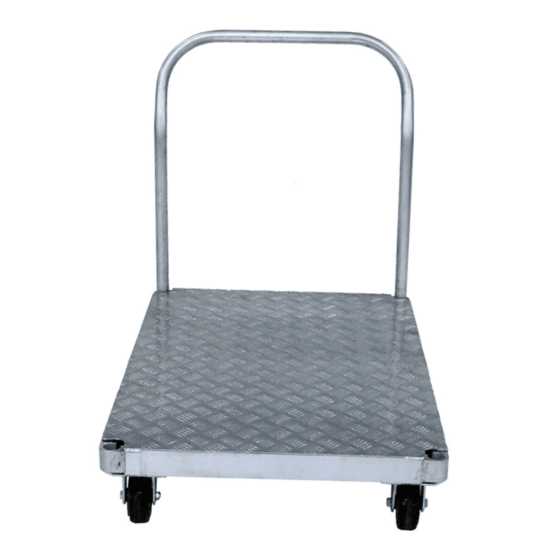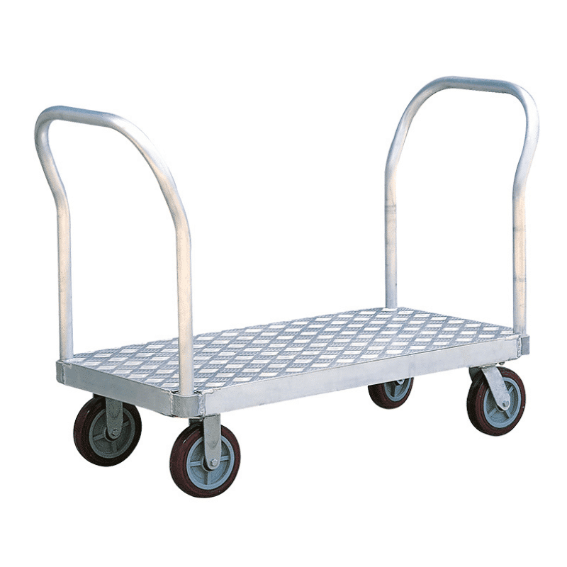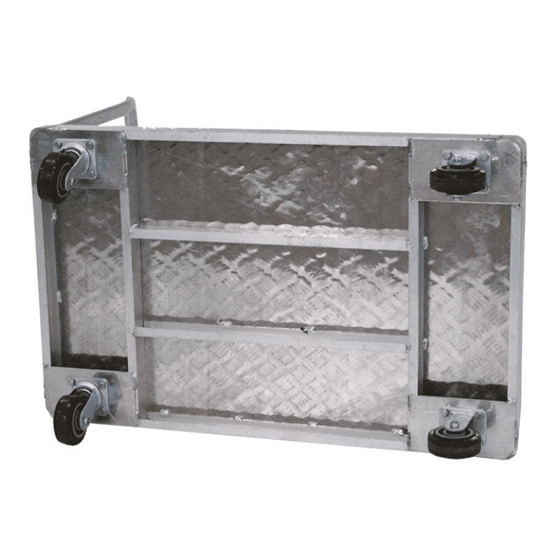 - Chariot aluminium très léger idéal pour charges lourdes (jusqu'à 900 kg) - Résistant à la corrosion - Travail en extérieur, en laboratoire, en chambre froide, etc. - Deux roues fixes et deux pivotantes - Emplacements prévus pour un timon supplémentaire - Plateau antidérapant - Roues de 125 mm montées sur roulements à billes - 5 dimensions possibles