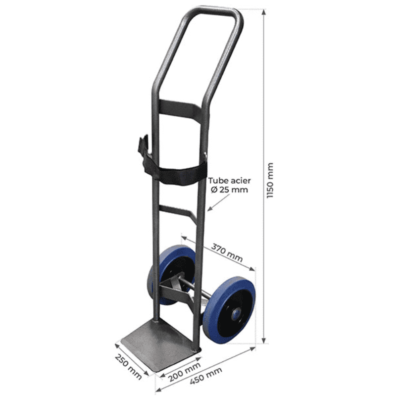- Ce diable est spécialement conçu pour la manutention de charges cylindrique comme des bouteilles de gaz ou des fûts - Léger, maniable et robuste grâce à son châssis renforcé - Tablier incurvé pour plus de stabilité de la charge - Capacité de charge de 200 kg - Excellente roulabilité grâce à ses roues premium équipées de roulements à billes - Roues de grand diamètre pour un meilleur franchissement et une meilleure roulabilité - Livré avec sangle de maintien de la charge
