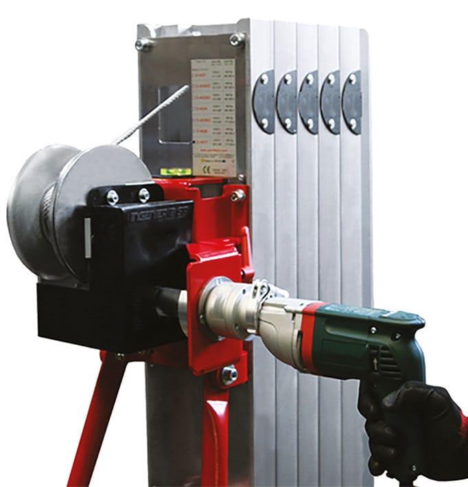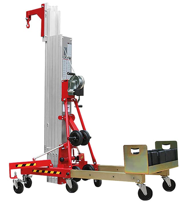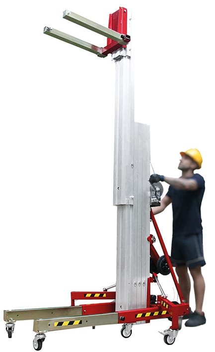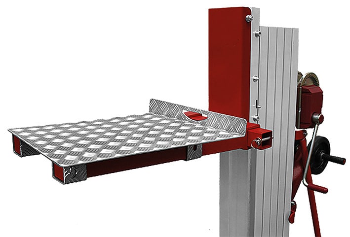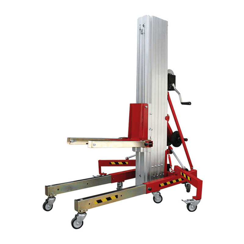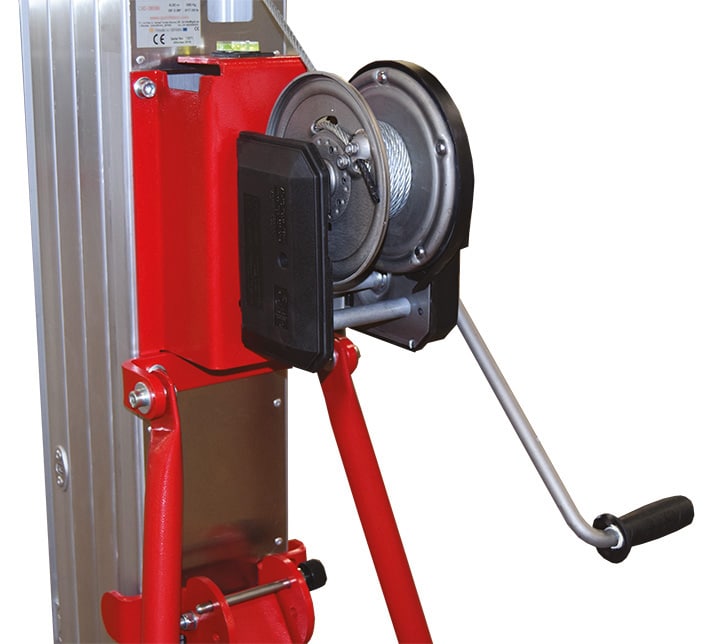 - Cet élévateur dispose d'une triple sécurité indépendante avec : Treuil avec frein automatique, anti chute automatique, verrou de sécurité sur chaque mât
