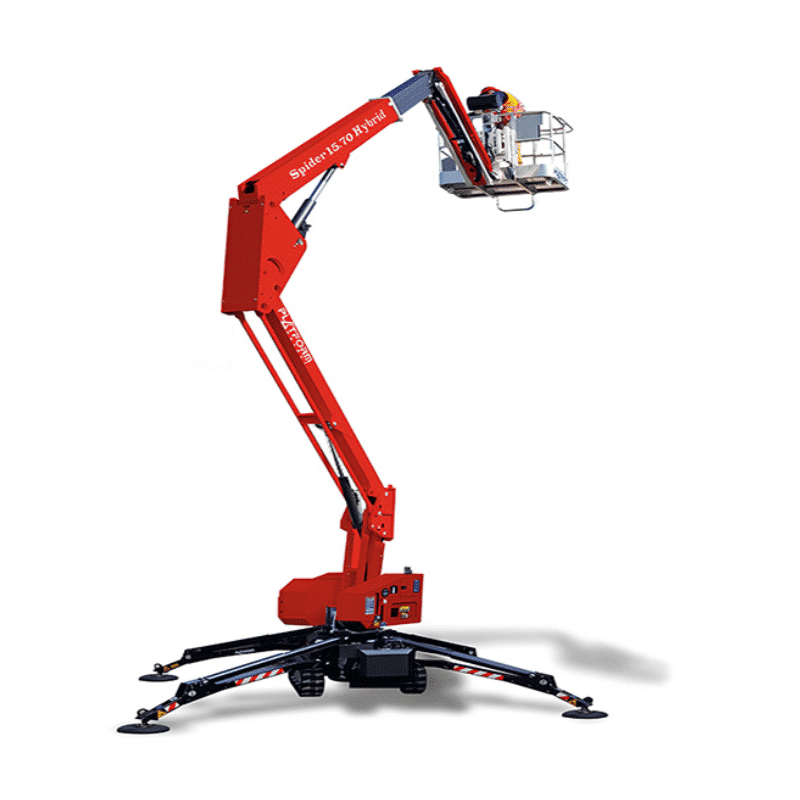 La Platform Basket Spider 15.70 est une nacelle araignée compacte et performante, spécialement conçue pour les travaux en hauteur nécessitant à la fois mobilité et stabilité. Parfaite pour les opérations d'entretien, de construction ou d'élagage, elle est particulièrement adaptée aux environnements urbains et aux terrains difficiles grâce à son châssis sur chenilles et ses stabilisateurs articulés.