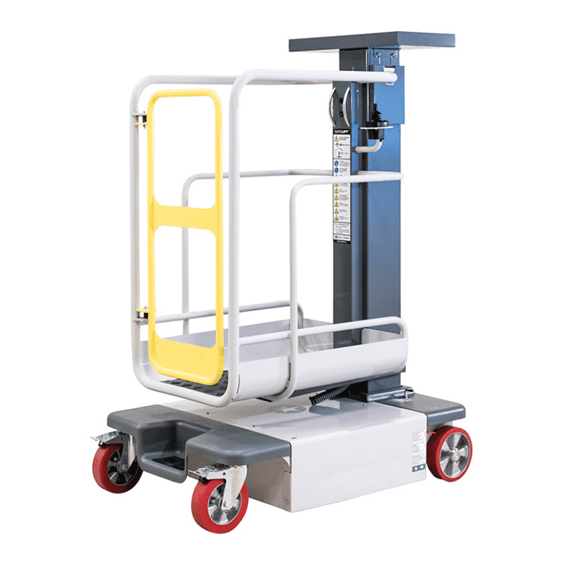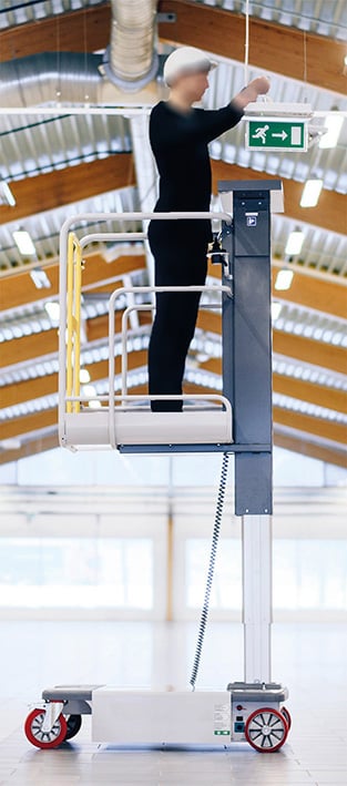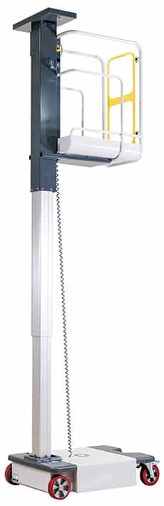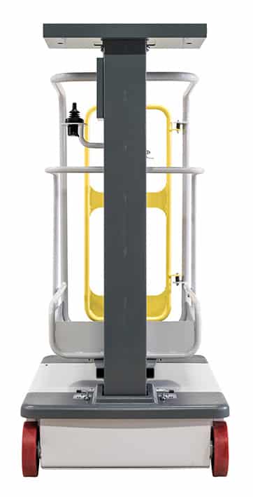 - Compact, polyvalente et équipée d'un mât vertical, cette mininacelle permet l'élévation de personnes en toute sécurité jusqu'à une hauteur de travail de 4950 mm