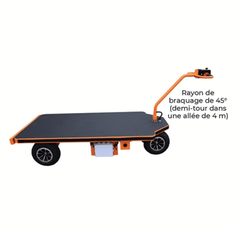 - Rayon de braquage de 45° (demi-tour dans une allée de 4 m)