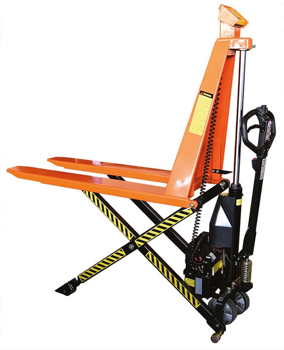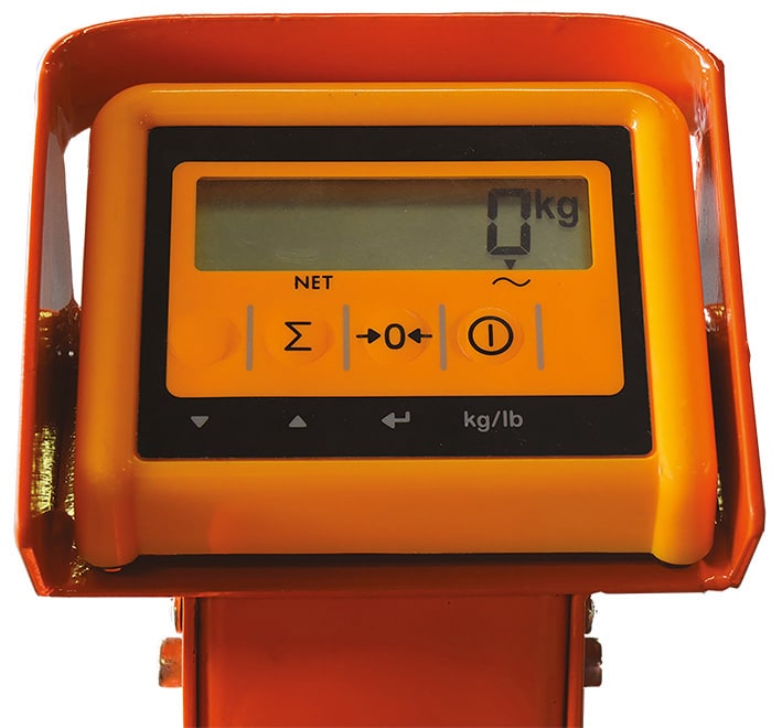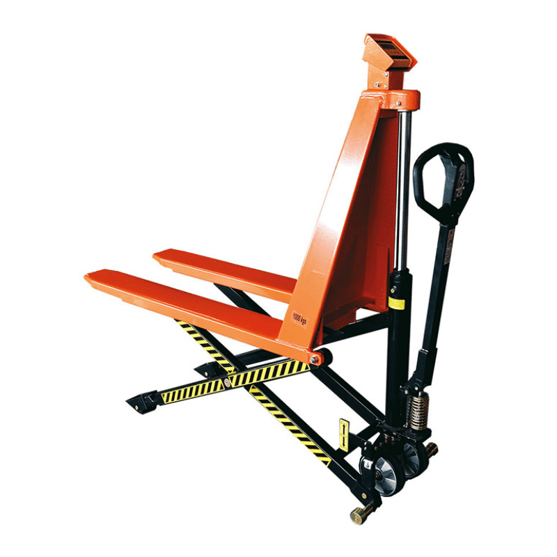 - Modèle de transpalette haute levée peseur disponible en version manuelle comme électrique