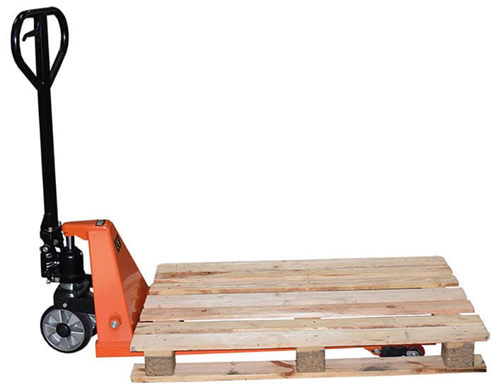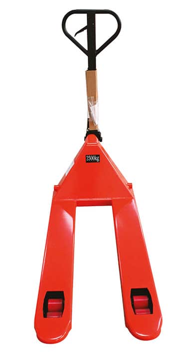 - Transpalette manuel basic de conception robuste - Rotation du timon 200° - Galets boggies en polyuréthane - Roues directrices en caoutchouc (Ø 200 mm), manœuvrabilité accrue - Galets boggies polyuréthane (Ø 80) - Équipe de graisseurs séparés - Peinture par système d’application de poudre Wagner (allemand) - Joints de pompe allemands - Couleur orange RAL 2002 - Roulements étanches 6204 2RS - Châssis garanti 5 ans - Pompe garantie 3 ans - Capacité 2,5 tonnes - Poids 67 kg - Hauteur d'élévation : 200 mm - Hauteur fourches abaissées : 85 mm - Longueur fourches standard : 1150 mm - Largeur extérieure fourches standard : 540 mm - Largeur d'une fourche : 160 mm - Épaisseur fourches : 60 mm