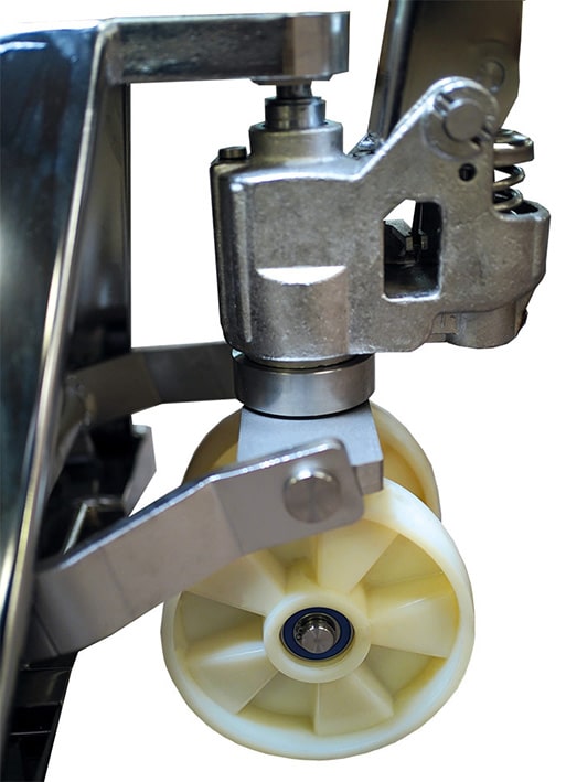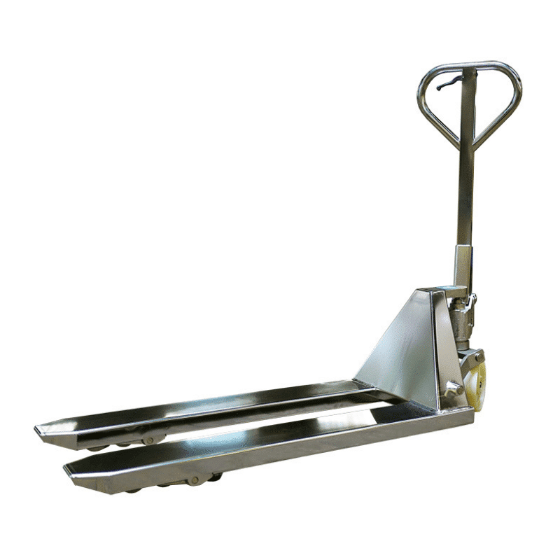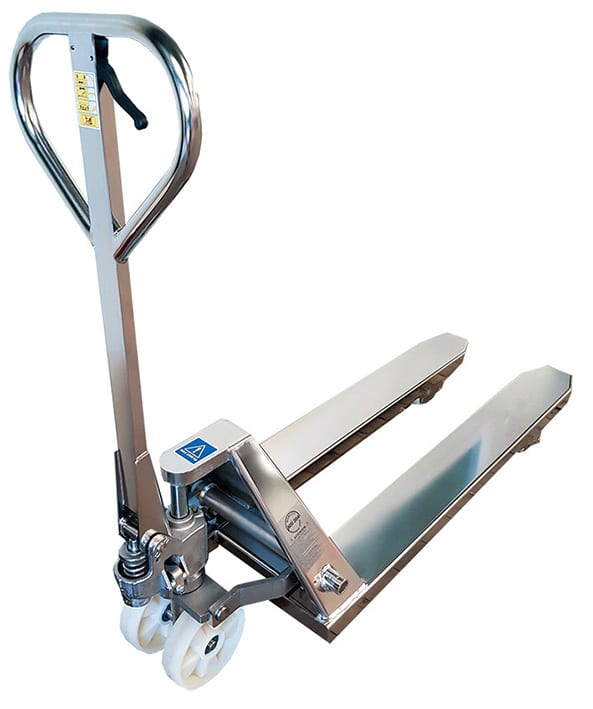 Le transpalette manuel premium HPESE25S en acier inoxydable de Stockman est conçu pour les environnements exigeant une hygiène rigoureuse, comme l'industrie alimentaire, pharmaceutique, ou chimique.