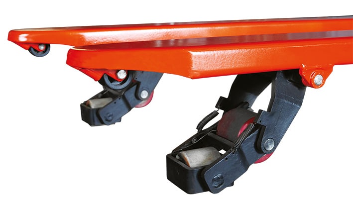 - Ce transpalette manuel est équipé de série de galets polyuréthane entrée et sortie